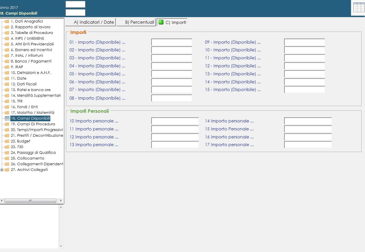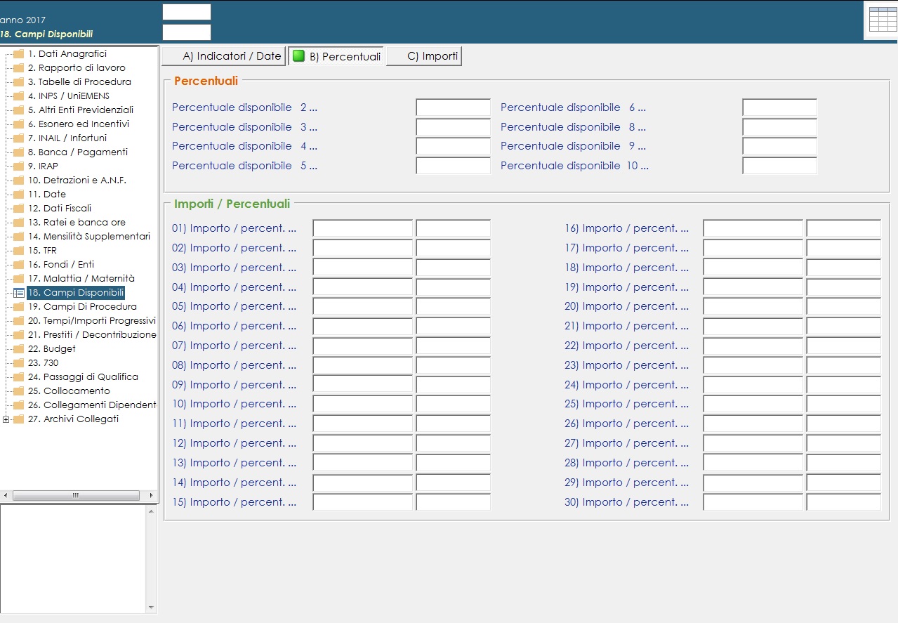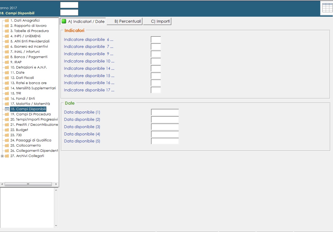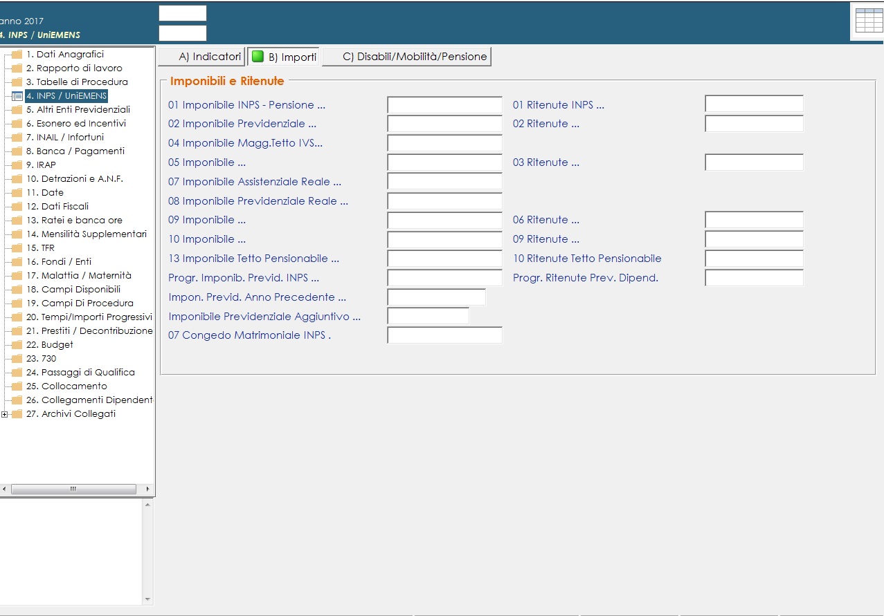 • A e B : Indicatore da valorizzare per i dipendenti disabili utile anche per avere il dettaglio nelle stampe di fine anno (vedi ad esempio Irap, quota di riserva, ecc.).