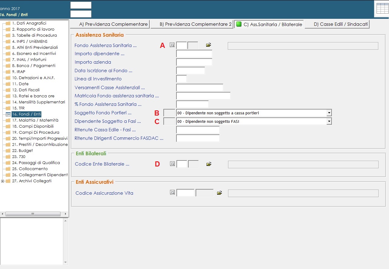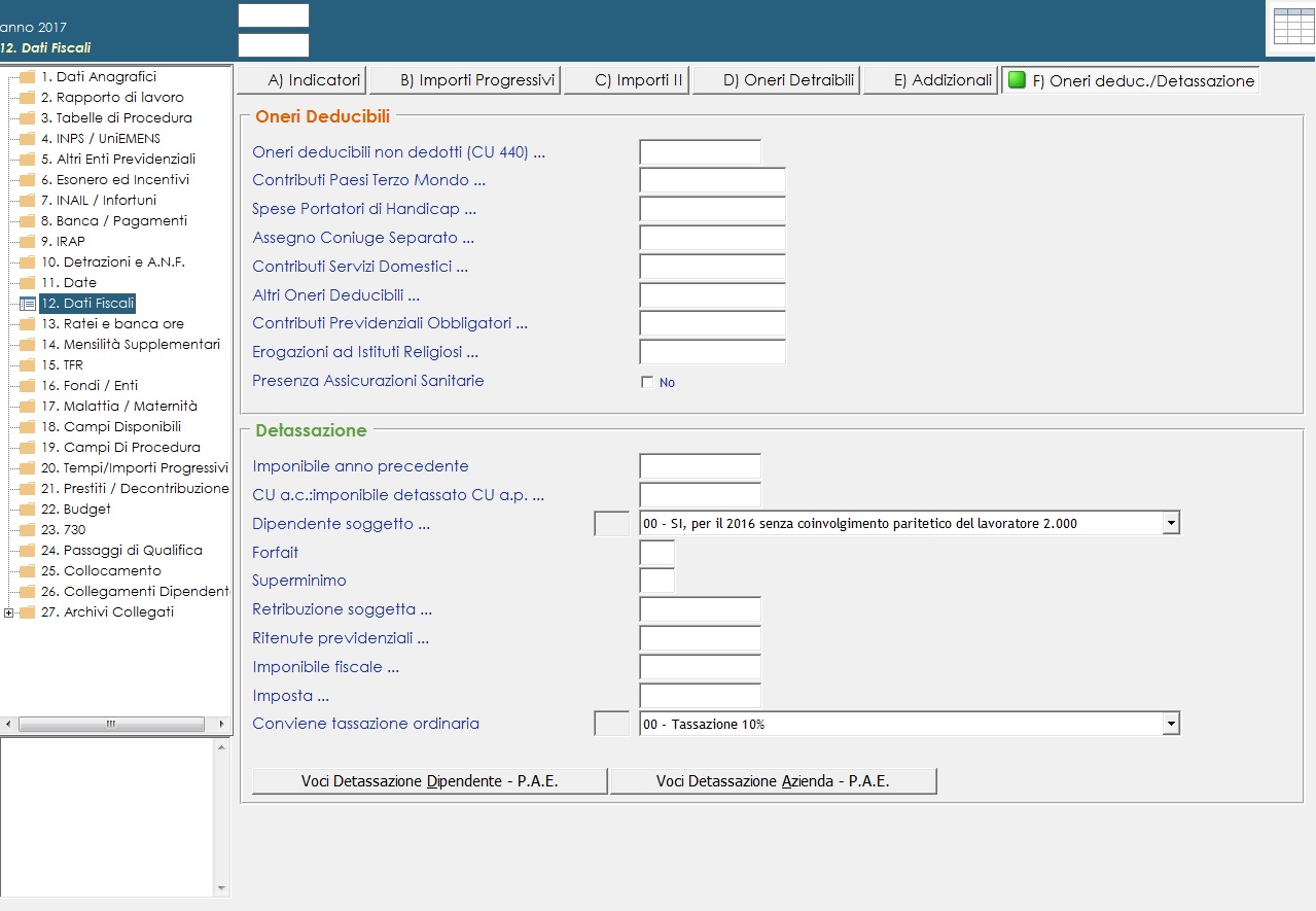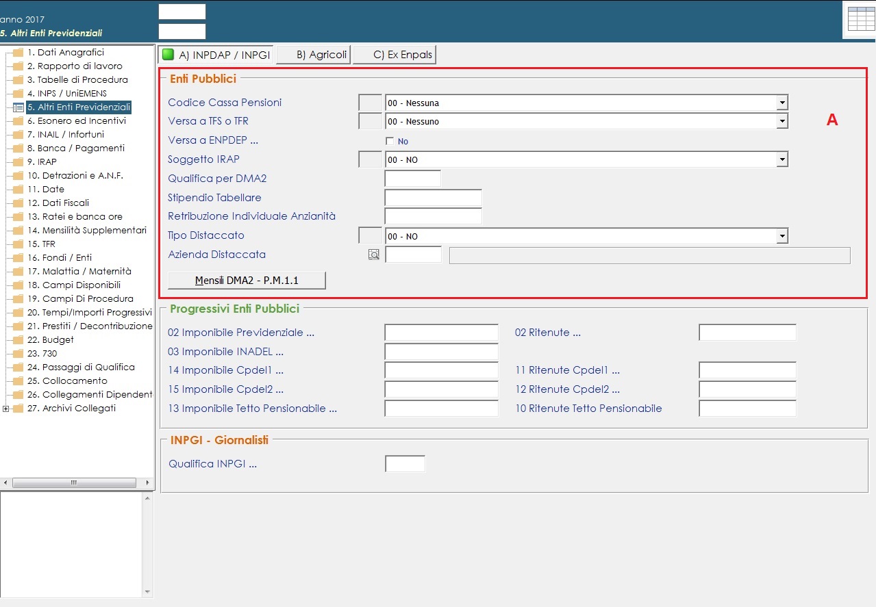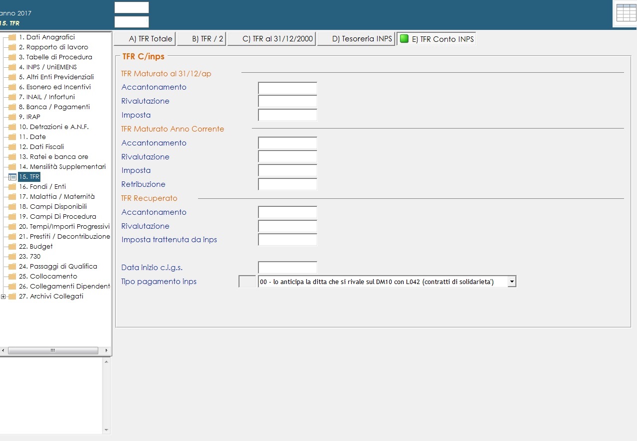 • E: sezione per la gestione degli eredi in caso di ecesso del dipendente.