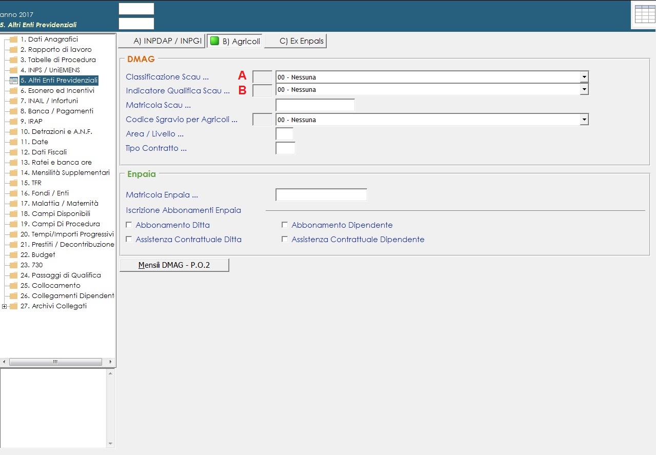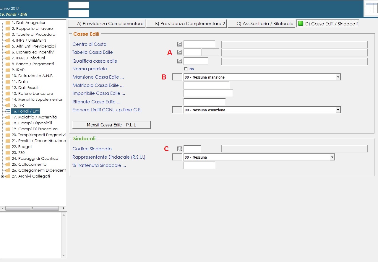 • A e B: indicatori per la gestione della qualifica cassa edile, della cassa marittima e dell'ex-Scau.