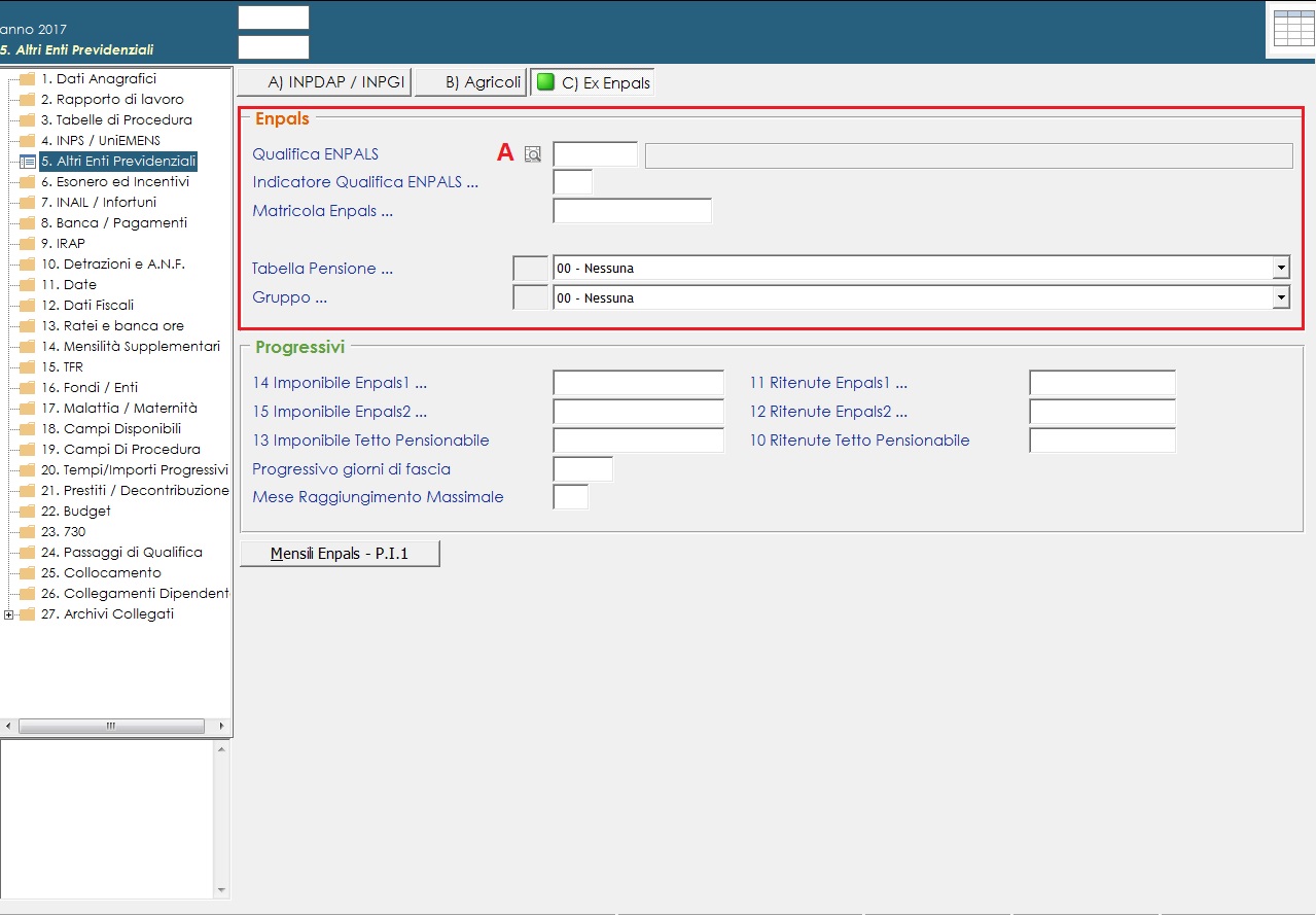 In questa maschera sono presenti i dati progressivi previdenziali (imponibili e ritenute).