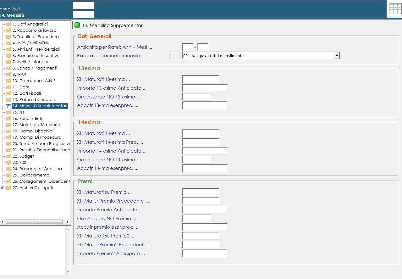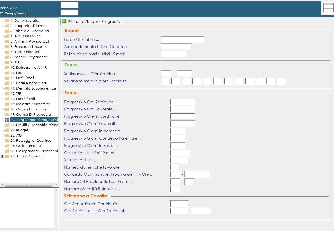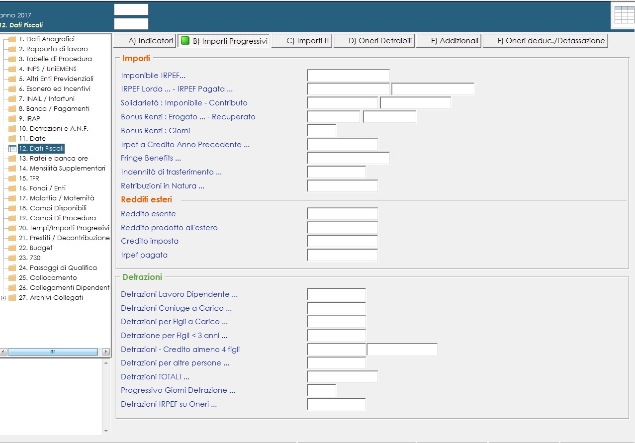 Si apriranno una serie di maschere dove verrà chiesto di inserire i dati principali per elaborare i cedolini del dipendente.