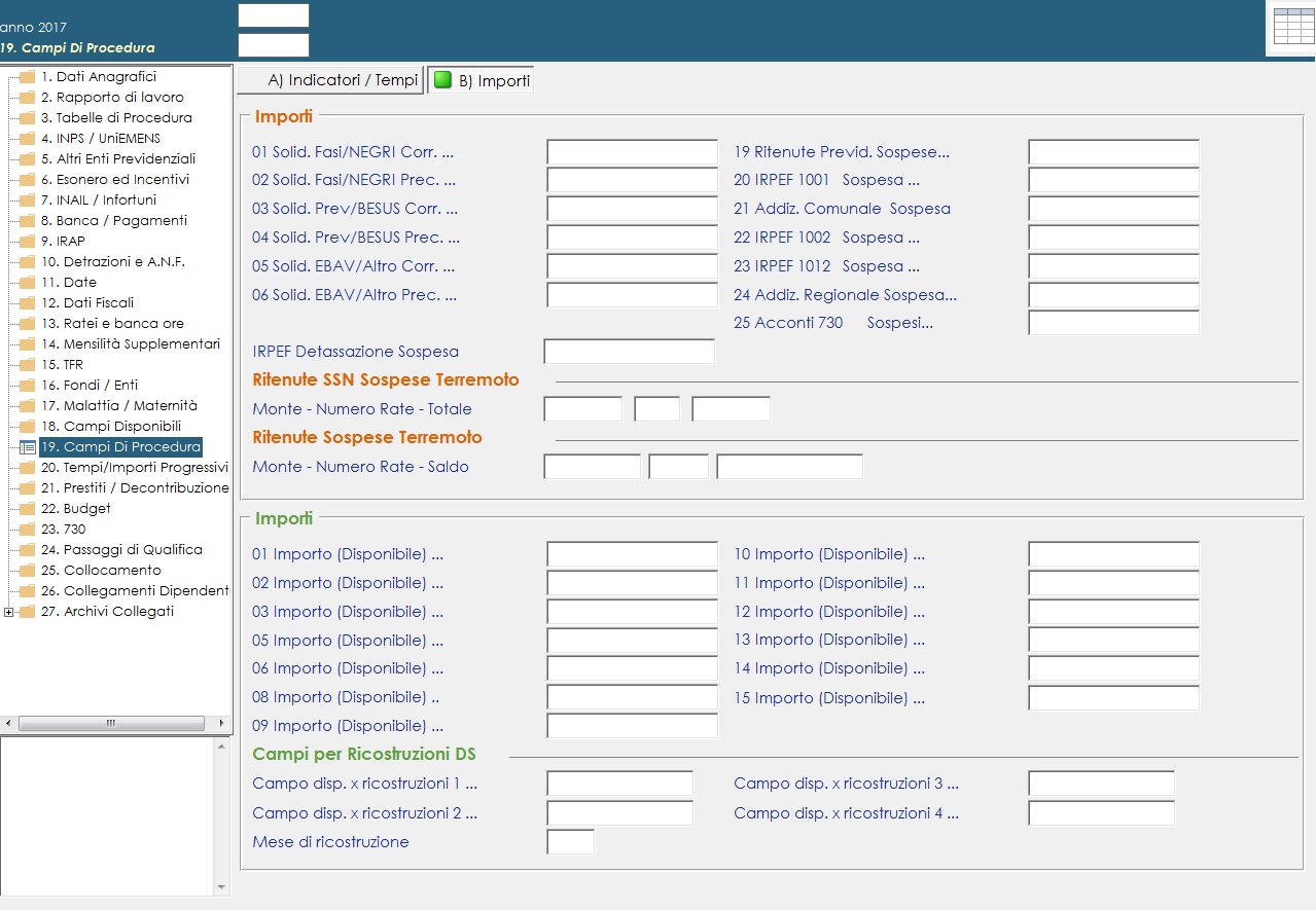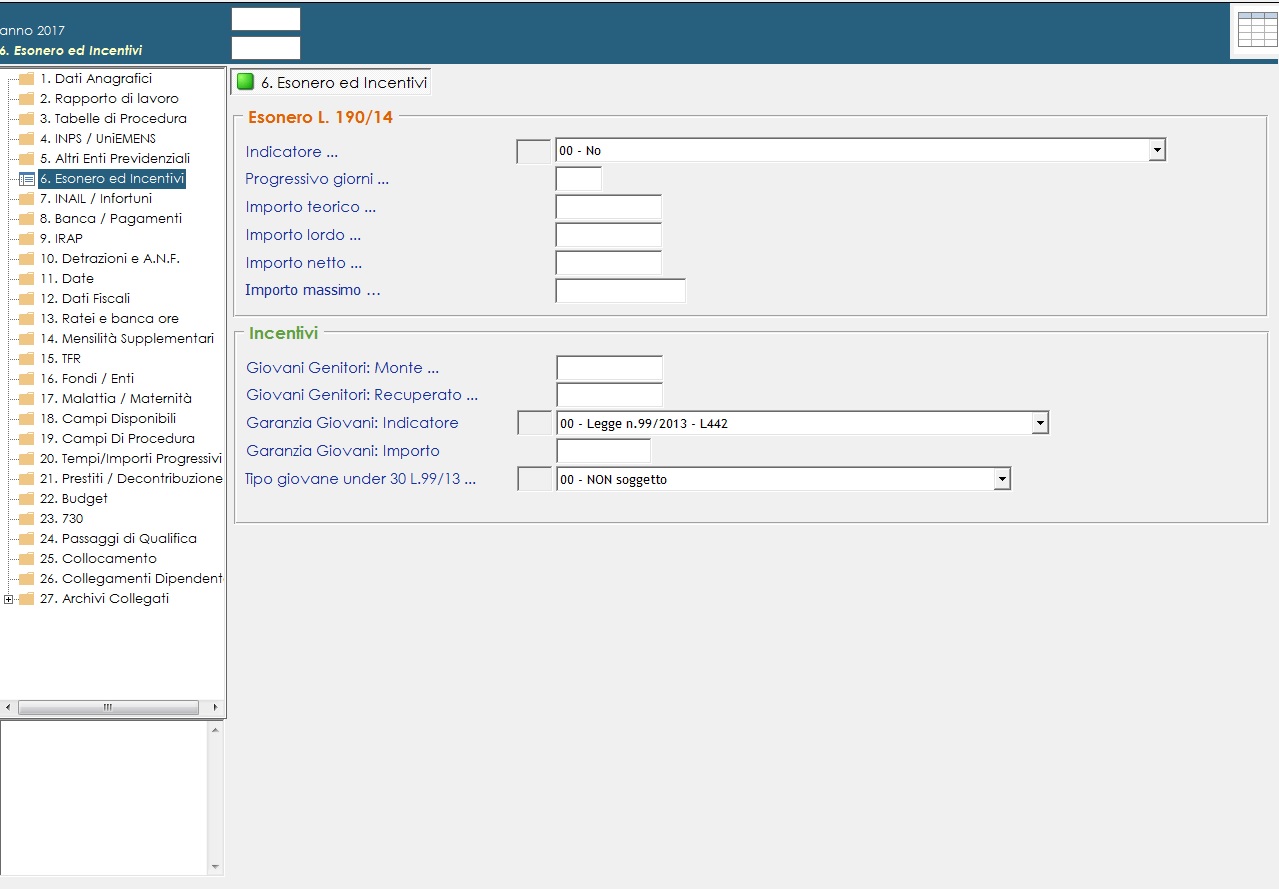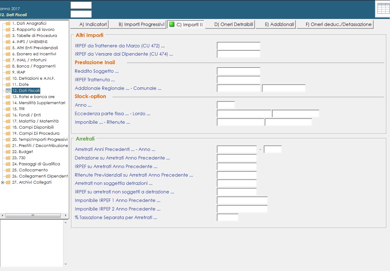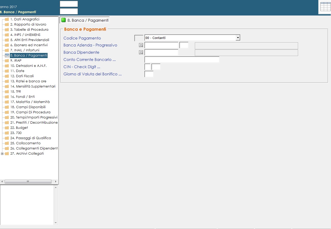 Si apriranno una serie di maschere dove verrà chiesto di inserire i dati principali per elaborare i cedolini del dipendente.