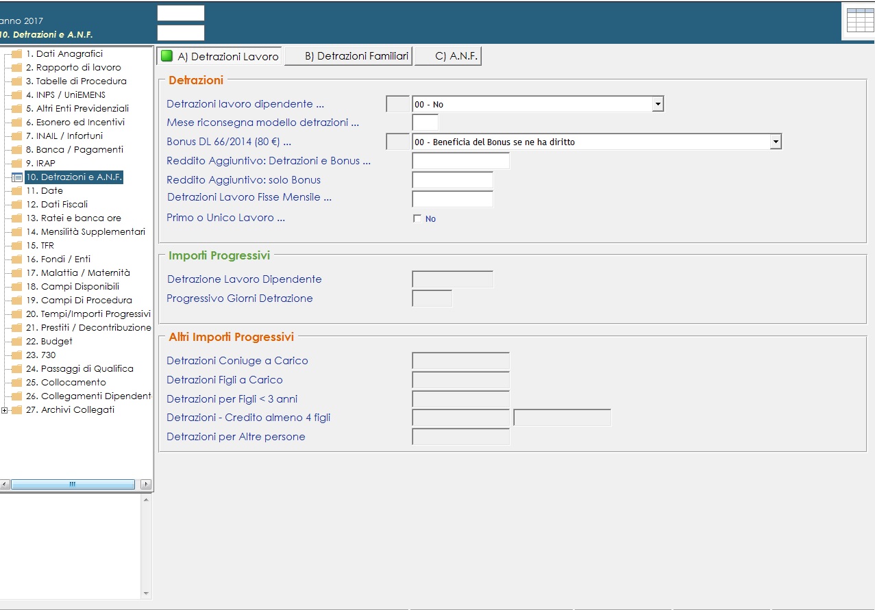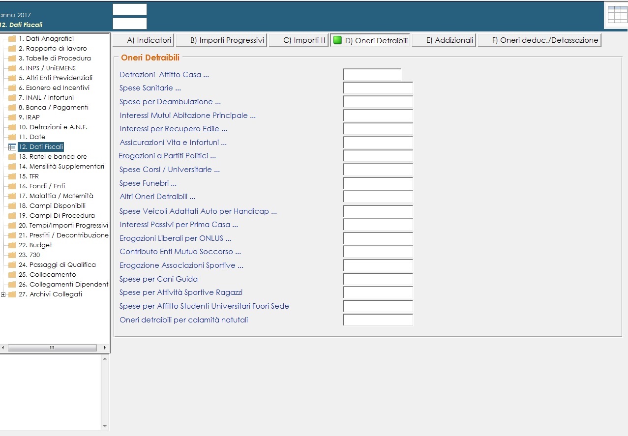 In questa maschera vengono riportati gli indicatori relativi alle detrazioni da lavoro dipendente.