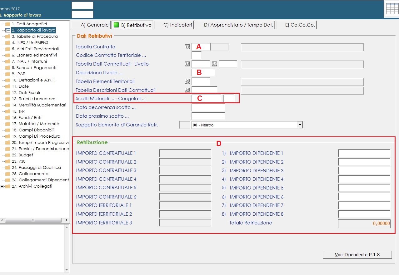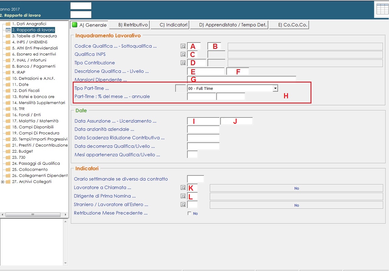 • A: qualifica del dipendente (operaio, impiegato, dirigente, apprendista, ecc.).