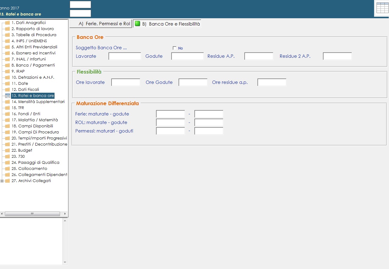 È stata pensata anche una sezione, sotto l'albero tematico (riquadro blu) dove verranno sempre visualizzati alcuni dati importati relativi al dipendente (qualifica, status, mansione, part-time).