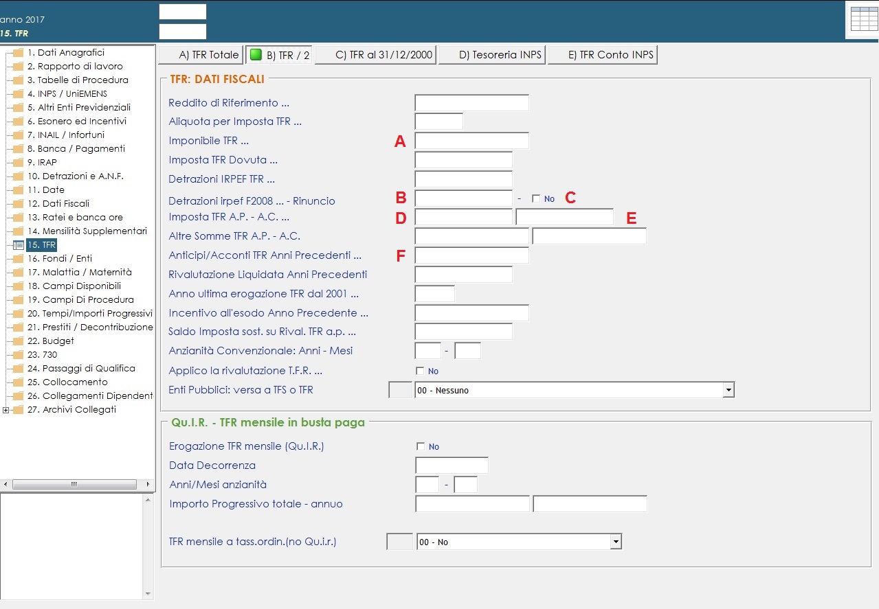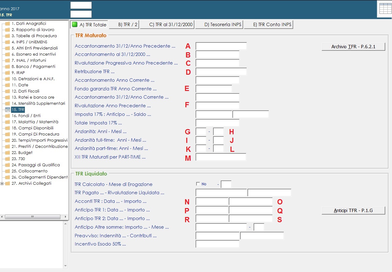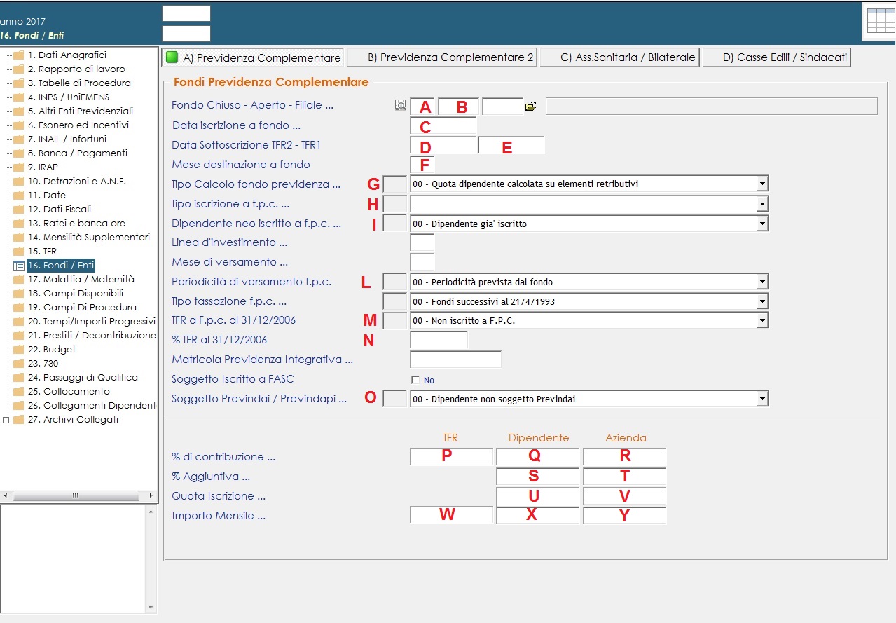 • A: Tfr progressivo accantonato a Fondo Previdenza Complementare (esclusa Tesoreria).