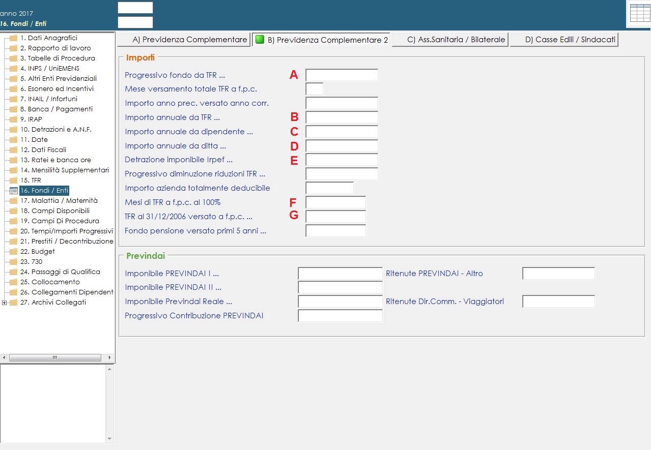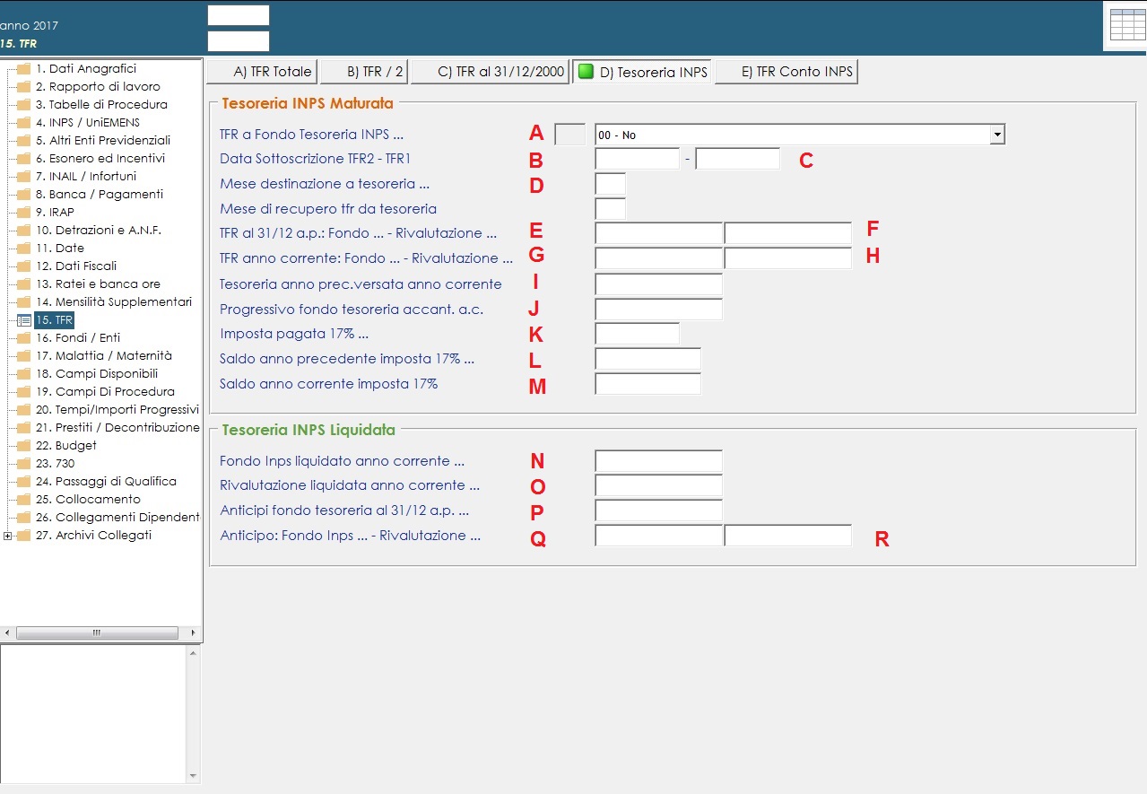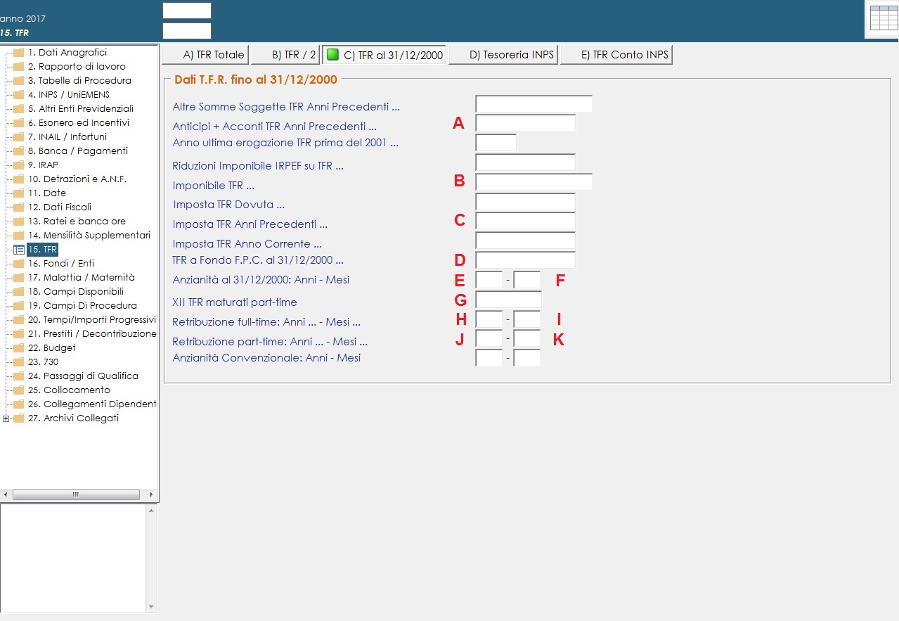 • A: Tfr progressivo accantonato a Fondo Previdenza Complementare (esclusa Tesoreria).