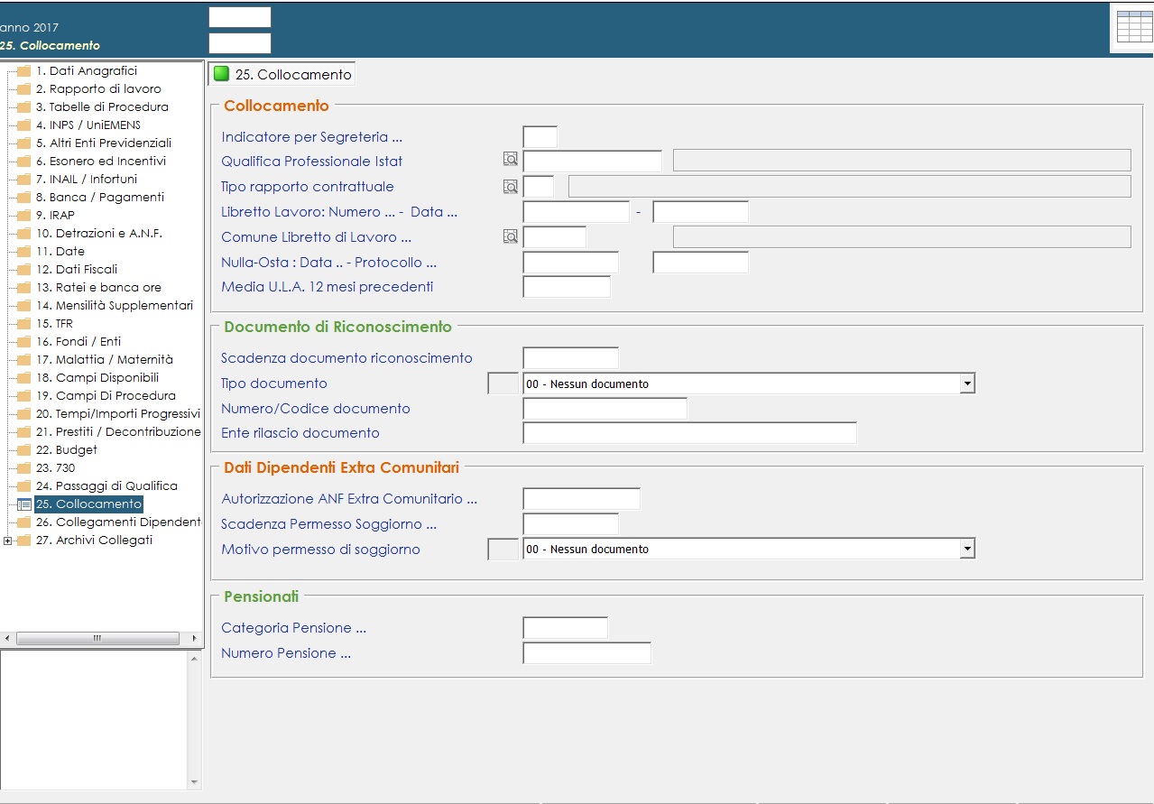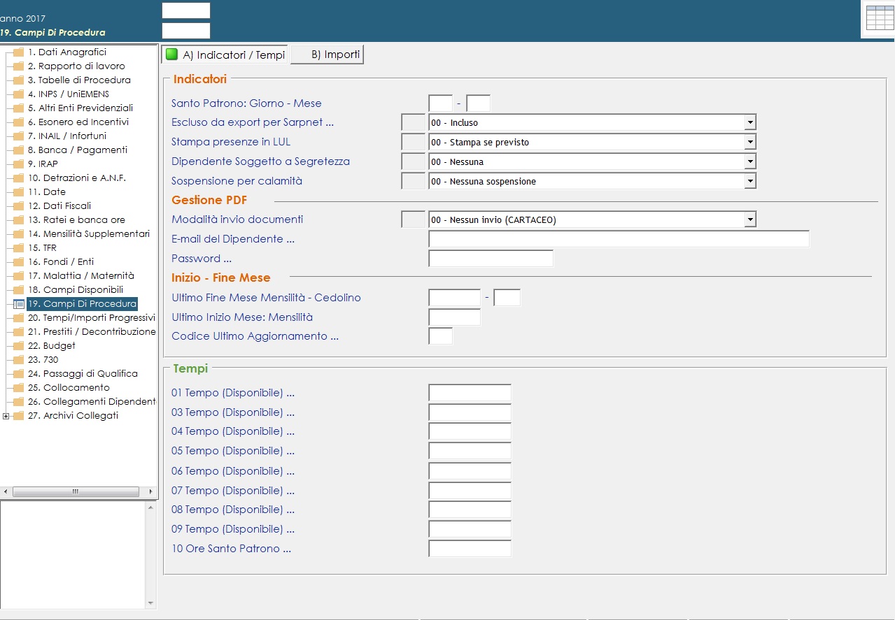 In anagrafica dipendente sono presenti moltissimi campi suddivisi in molte sezioni, pertanto diventa impegnativo ricordarsi la posizione di ognuno di essi.