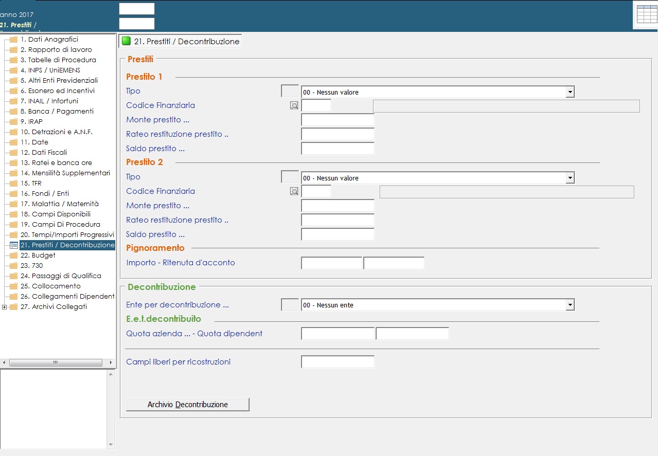 In questa maschera sono presenti i campi per la vecchia gestione dei prestiti (ora gestiti in P.1.J.) e i dati utili per la stampa dell'Irap.