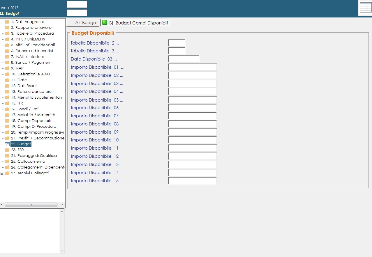 Questa maschera contiene i dati previsionali per la gestione del Budget.