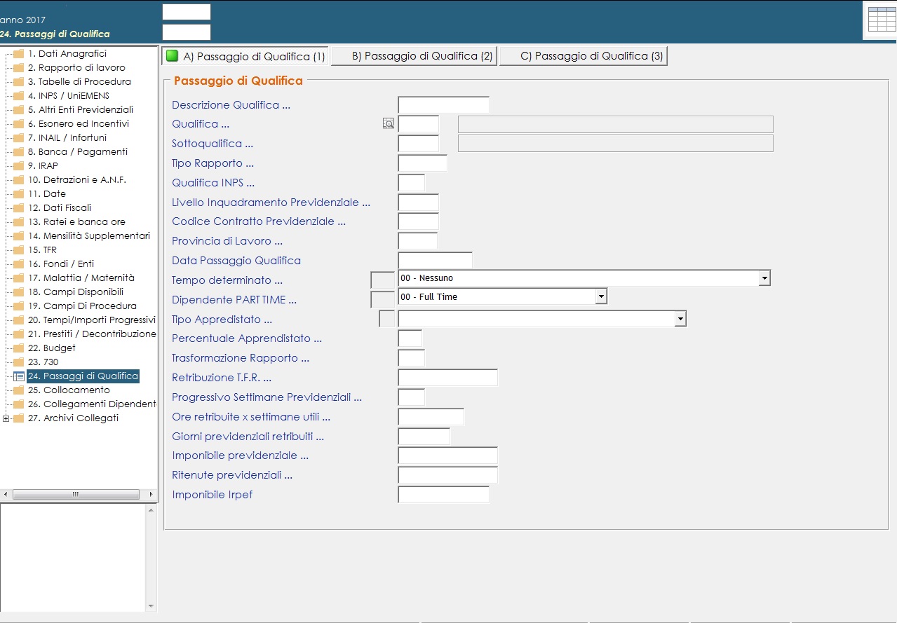In questa maschera vengono memorizzati i progressivi relativi ai vari passaggi di qualifica effettuati.