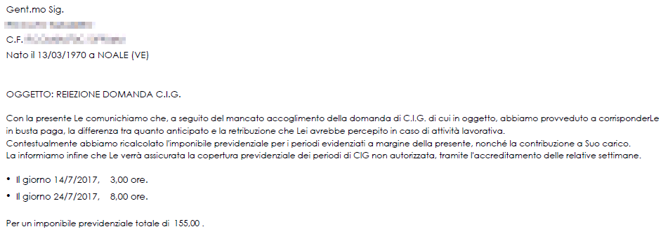 La “Stampa scheda per Dipendente da P.1.L.” permette di stampare un prospetto da consegnare al dipendente col riepilogo dei giorni, ore e imponibile previdenziale di C.i.g. Non Autorizzata:
